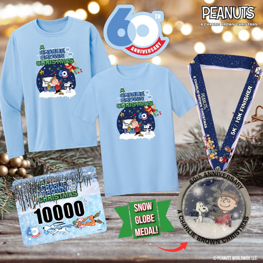 ALL participants will receive a festive top-notch, Officially Licensed Peanuts® finisher medal, participant bib, and performance tech t-shirt. There will also be an appearance by Santa and Post-Race Refreshments! So, come out and show everyone your best holiday attire and spirit!